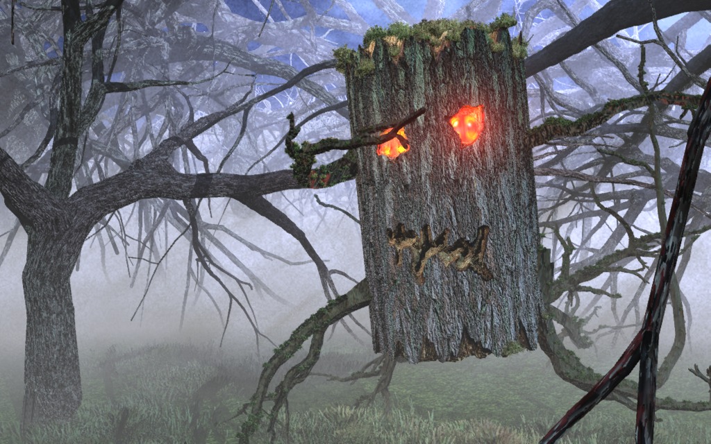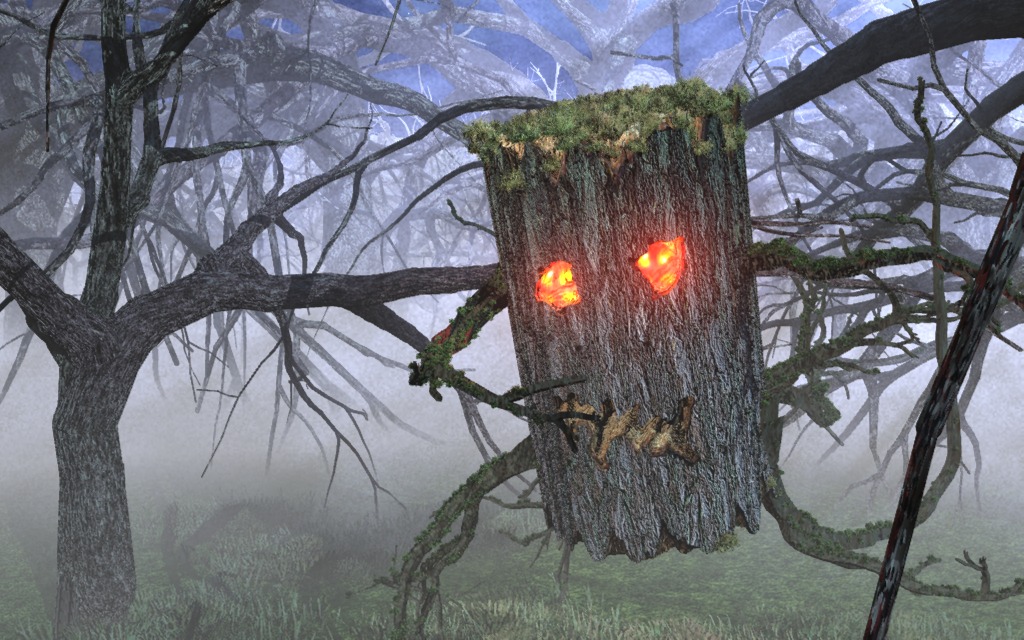 Kommt besser! Vielleicht noch ein paar Nebelschwaden zwischen den Bäumen im Vordergrund - das macht das Ganze noch unheimlicher und nimmt zugleich dem Umfeld hinter dem Baummonster die "Leere"...