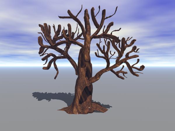 Es erscheint mir nur etwas verwunderlich wieso er den Baum zunächst in Bryce aus Terrains bastelt, ihn dann als .obj exportiert um ihn wieder extra in Bryce zurück zu importieren...