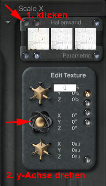 Mit einer Plane hat man in Bryce nicht viele Möglichkeiten animiertes Wasser darzustellen. Das geht in erster Linie über die Textur, wobei die "Wellentiefe" bzw. Form und Höhe der Ripples nur durch den Bumpkanal bestimmt wird - also ein eher gefaketer Raumeffekt. Viel mehr als in Deinem zweiten Beispiel wird da auch nicht drin liegen. Quer zur Laufrichtung der ripples würde der Wind blasen und sie so vor sich her treiben, also muss ggf. die Verlaufsrichtung der Textur im Motiv gedreht / angeglichen werden. Das kann man einstellen wie im screenshot gezeigt.