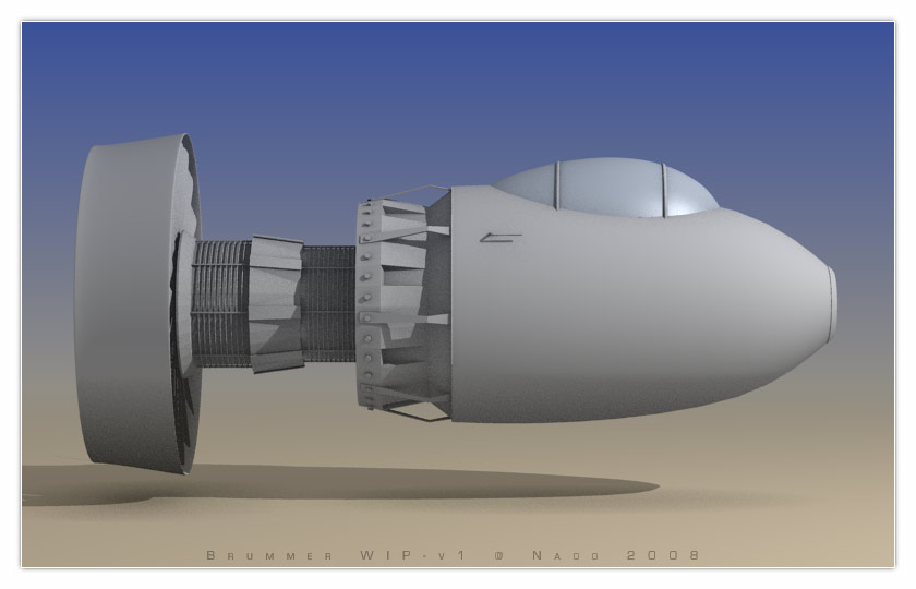 v0: Als Anregung dienten mir Fotomontagen ähnlich abgespeckter, gedrungener Flugkörper.