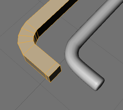 • Dann nimm Dir halt einen Würfel und extrudiere ihn am Ende zu einer stufigen Kurve und dann schmeißt Du doch den Hyper-NURBS rein. Fertig.