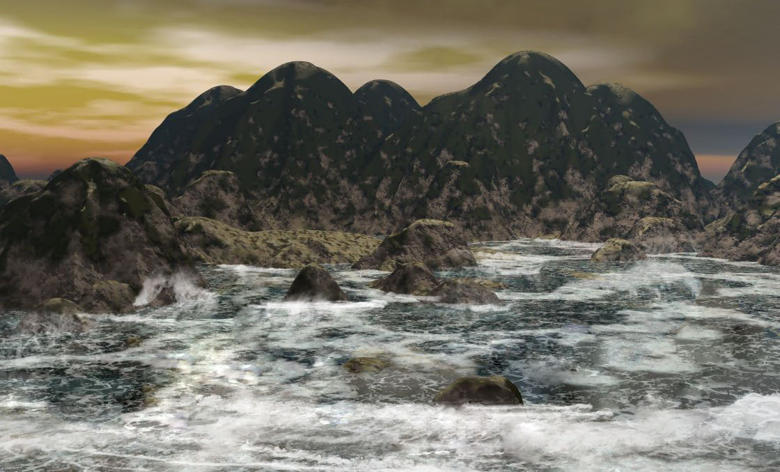 Das Wasser ist toll gemacht und passt auch zu den Felsen (welche ein bisschen mehr bump vertragen könnten) ansonsten schönes Bild!