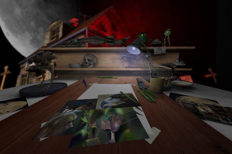 Der Zeichner, Fotograf beim sortieren seiner Bilder. Auch wenn es ein wenig virtuell ist. Aber mein Zeichentisch sah früher tatsächlich mal so aus. Lang ists her. Heute steht ein Rechner auf den Tisch. Das Zeichen ist leider etwas in den Hintergrund getreten. Auch wenn ich immer noch gerne ein wenig Scribble. Dem Fotografieren und 3D gehört heute der Raum den einst das zeichnen einnahm.