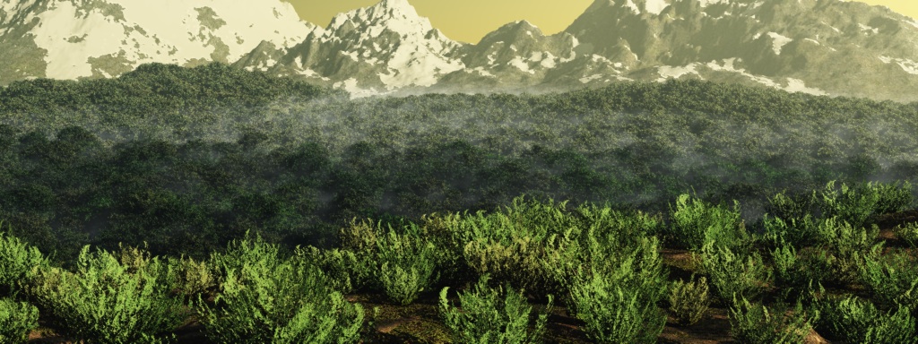 [...] Ein Schatten lag über dem sonst so friedlichen Tal und grauer Nebel breitete sich aus, verhüllte die Bäume und dämpfte jegliches Geräusch. [...] - Das war das Erste, was mir nach dem Fertigrendern zu diesem Bild eingefallen ist. ![]()