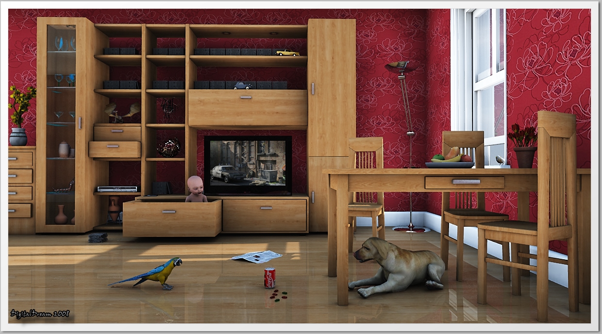 jaja der Hund ich mag den kerl halt ist im übrigen ein Vue Hund also kein posing möglich... Und zu den Möbeln diese stehen tatsächlich bei mir im