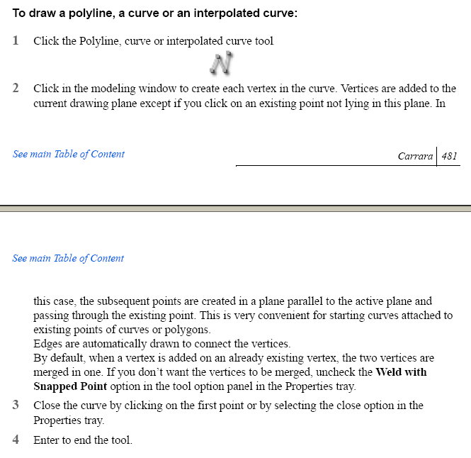 das funktioniert natürlich schon, ist aber ein zusätzlicher Arbeitsschritt, und wäre wenn ich das Handbuch (siehe oben) richtig verstehe nicht sein, normalerweise müßten die Vertecies gleich beim ersten Punkt zu einem verschmelzen, so daß eine zusammenhängende Line entsteht, oder versteh ich das Handbuch falsch, ode vielleicht ist es ja auch ein Bug in Carrara ??