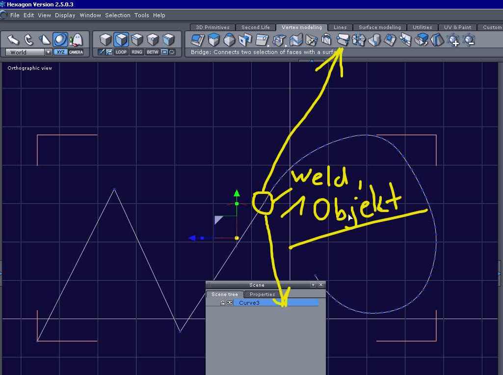 im Handbuch steht, daß man zu einer bestehenden Polyline eine weitere anfügen kann, wenn man auf einen Vertex als Startpunkt klickt, dazu gibts dann auch noch die Option "Weld with snapped Points" aber wenn ich es versuch, hab ich immer zwei einzelne Objekte, es funktioniert nur wenn ich zwei Polylines miteinander verbinden will, aber nicht wenn eine Curve oder so mit dabei ist.
