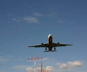 Der Airbuss A 330 im Landeanflug auf den Düsseldorfer Flughafen.
