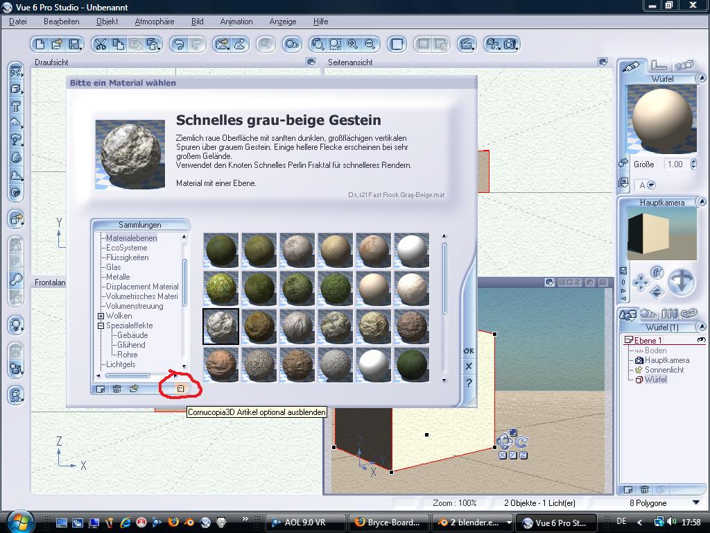 wenn ich es unterbinden will ständig bei der Materialauswahl in der blöden Verlinkung zum Cornucopia Shop zu landen, muss ich wahrscheinlich die Materialdateien mit ner Tilde im Namen aus der Bibliothek löschen, oder?