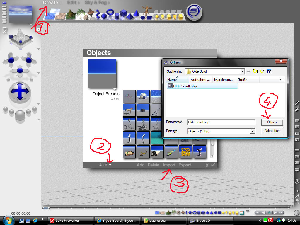 Es gibt auch noch einen anderen Weg, in dem man die obp Datei direkt in das "Presets" Verzeichnis von Bryce reinschiebt.