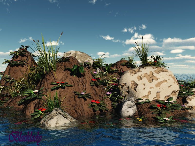 Lediglich der große helle Stein rechts im Bild wirke für mich beim ersten hinsehen wie ein Ei. Bei diesem Stein vielleicht eine andere TExtur verwenden, ansonsten: