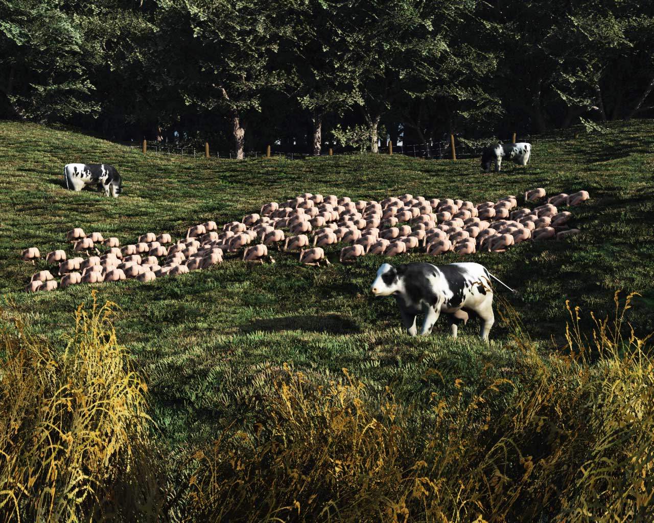 Sehr genial, gefällt mir. Vielleicht solltest Du die Kühe auf zwei Beine stellen und denen ein paar klamotten anziehen ![]()
