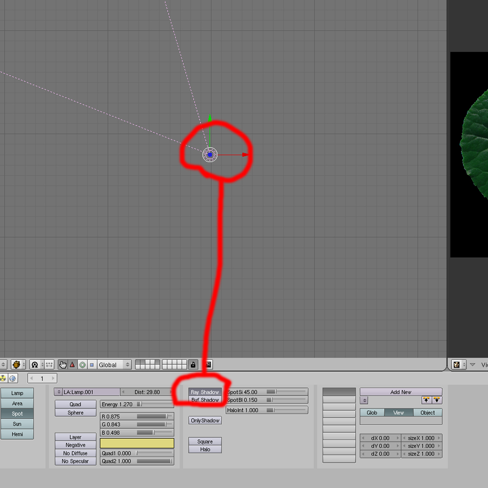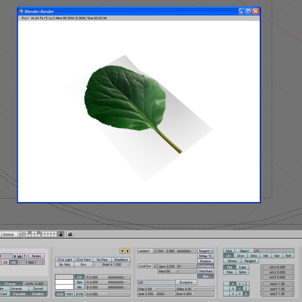 Mittel UV-Mapping habe ich das Blatt reingeladen. Nun passt sich der Schatten irgendwie nicht dem Blatt an und rendert mir immer noch quasi das ganze Bild.