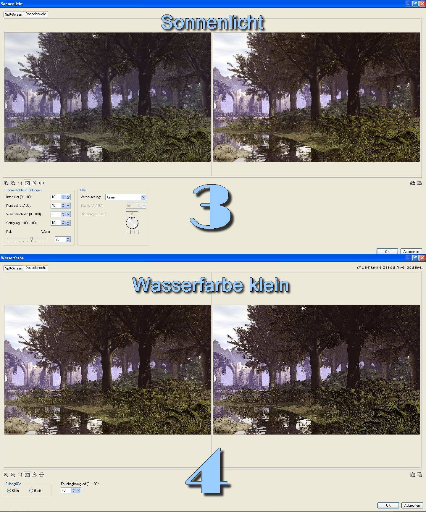 Spezialfilter wie Ölmalerei oder Wasserfarbe.