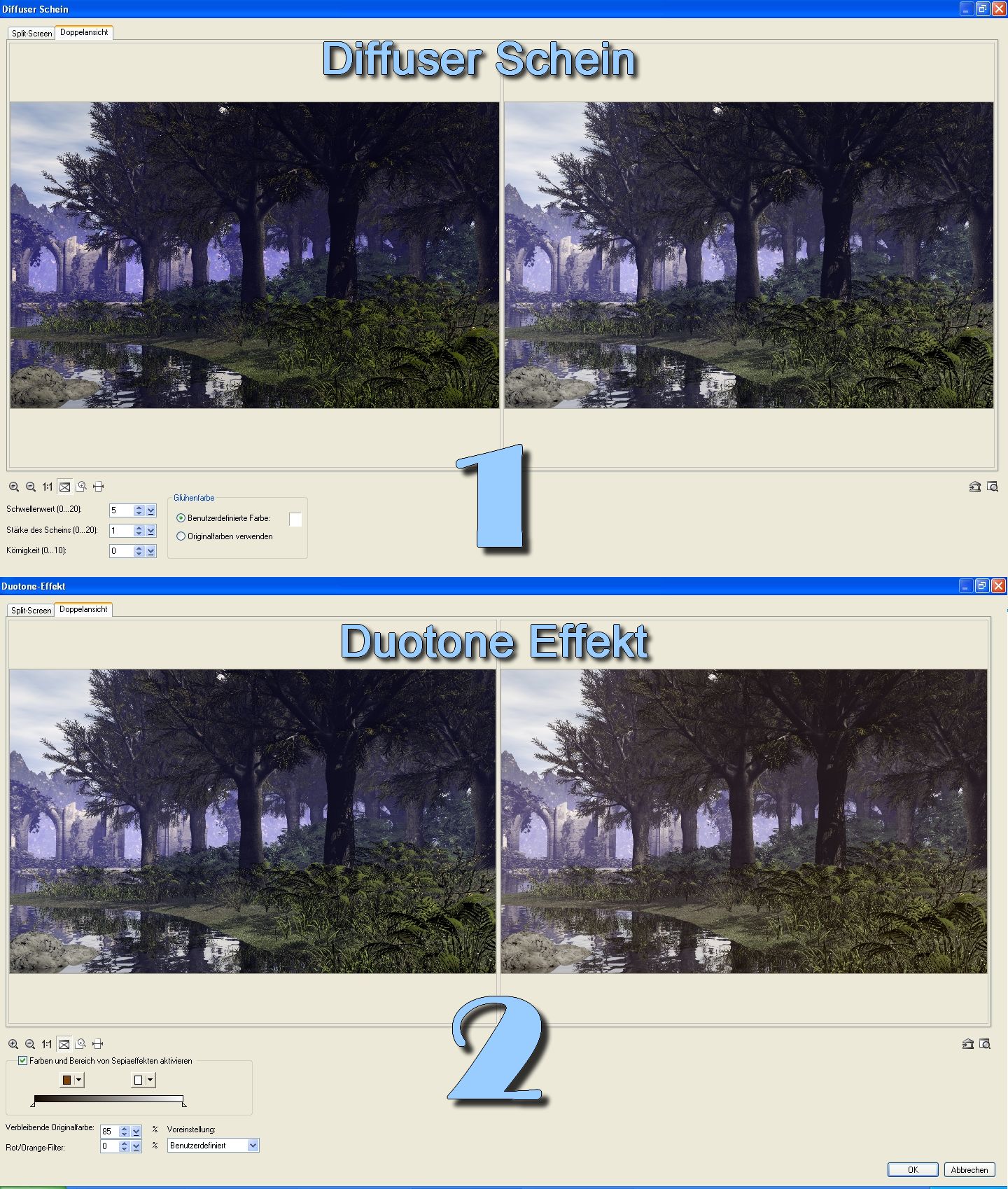 Spezialfilter wie Ölmalerei oder Wasserfarbe.