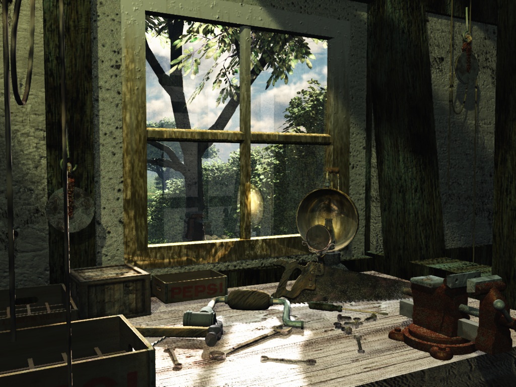 Klasse Bild. Zum Teil hat es noch einige seltsame Texturen. Handbohrer- und Hammergriff. Fensterrahmen...