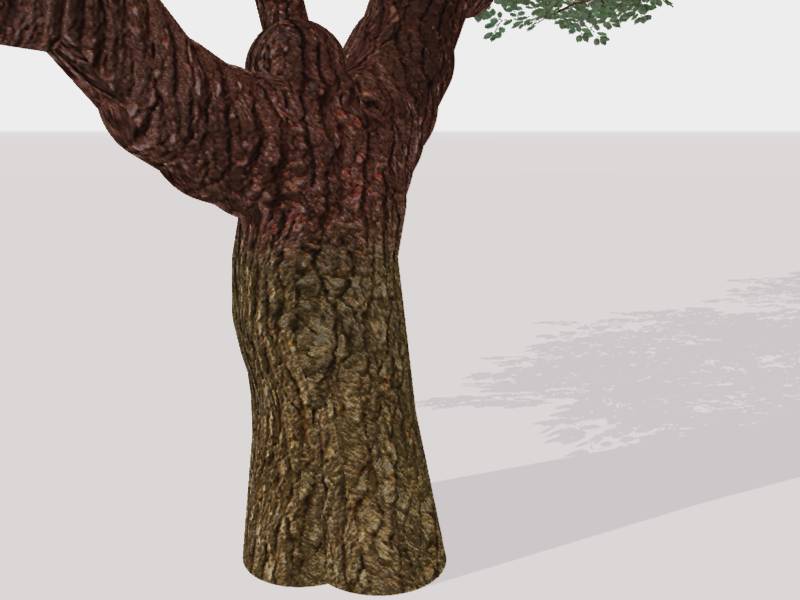 Aber irgendwie sieht die Textur auf dem Baum überhaupt nicht aus wie das Foto... Hast Du zu der Textur auch eine Bumpmap? Die könnte ein wenig mehr realismus bringen und die Farbgebung scheint irgendwo einen kleinen Fehler zu haben...