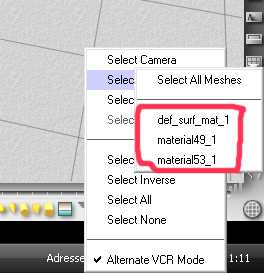 In Bryce importierst du dann das Objekt und über Select Meshes kannst du die verschiedenen Materialien markieren und ihnen dann in Bryce eigene Materialien zuweisen.