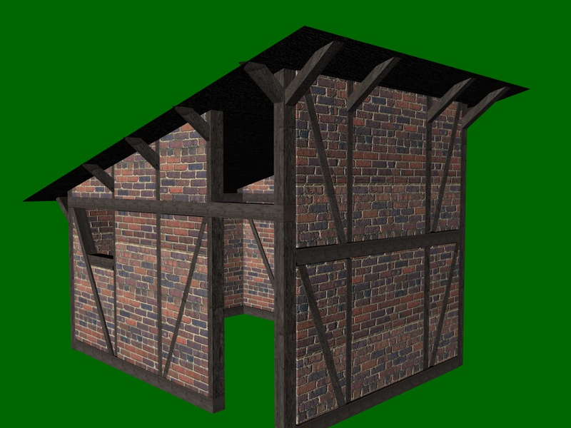 Dach mit Seitenverkleidung und Boden für das Gras. Jetzt fehlt nur noch die kleine Tür zum Heuboden, dann kann der Feinschliff an den Texturen beginnen.....