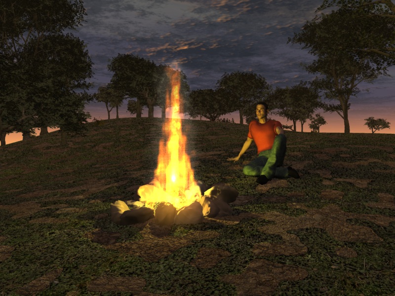 Das sind zwei Alpha-planes, mit einer Textur. Das Feuer wurde mit 3DS Max und FumeFX gerendert. Ich habe die Alphaplanes dann einfach im 90° Winkel zueinander gekreuzt, naja Ihr kennt das ja ![]()