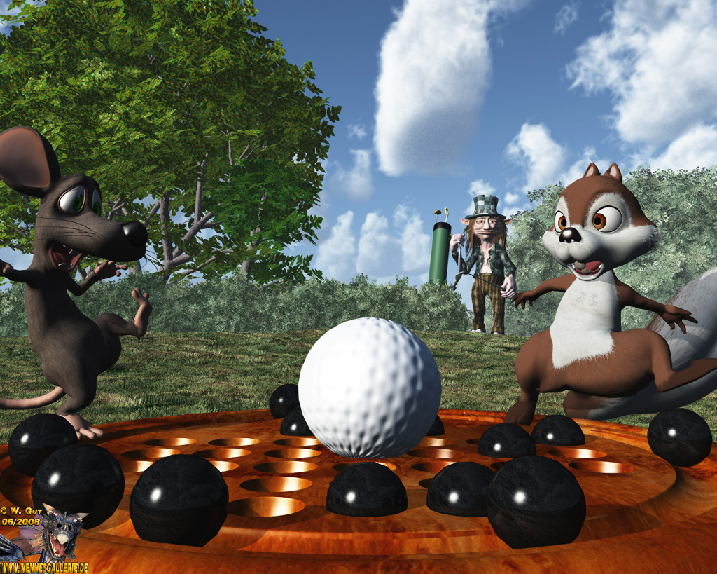Solitaire spielen ist schön, aber man sollte aufpassen dass Teo nicht gerade in der Nähe Golf spielt. Der kann mit einem Schlag ein Spiel zunichte machen. ![]()