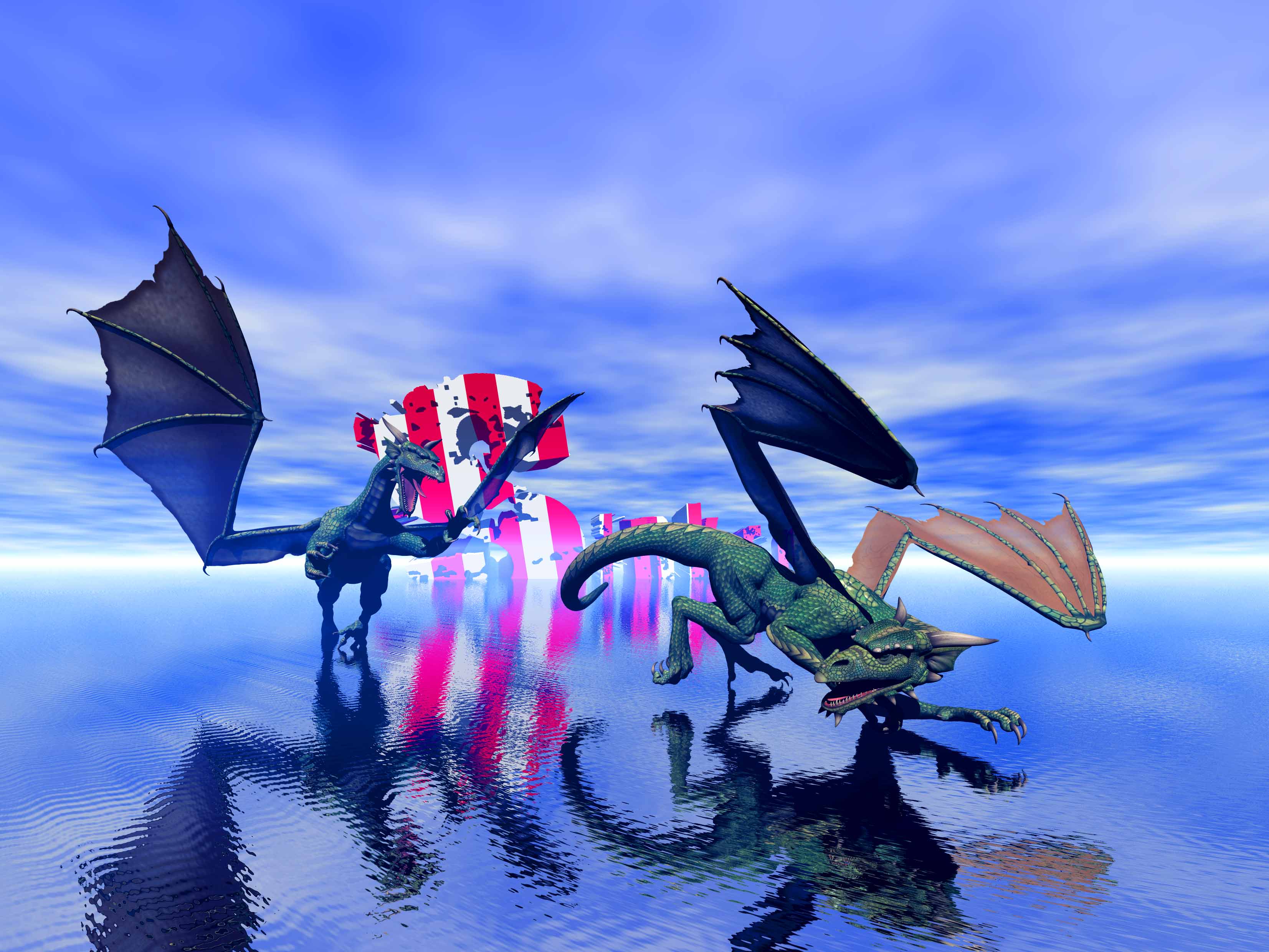 die Landvariante kommt definitiv noch besser! Wenn es bei Deinem Projekt aber in erster Linie um 3D Typo geht würd ich selbige etwas näher in den Vordergrund holen und vielleicht z.B. einen der Drachen auf den höchsten Buchstaben setzen...