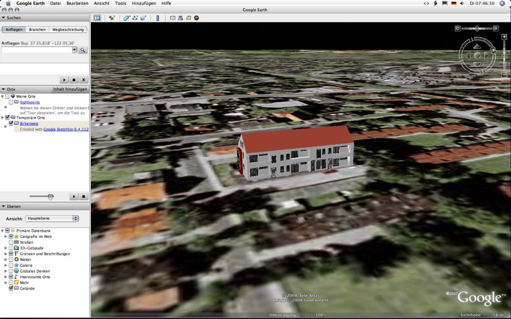 Wieso? Läuft doch einwandfrei. "in Google-Earth betrachten" lädt die .kmz runter und ein Doppelklick darauf öffnet Google-Earth und das automatische Anfliegen und nach ein paar Augenblicken steht man vor dem Haus.