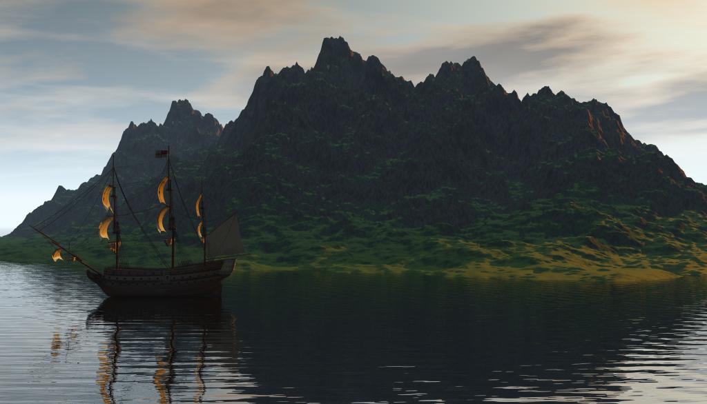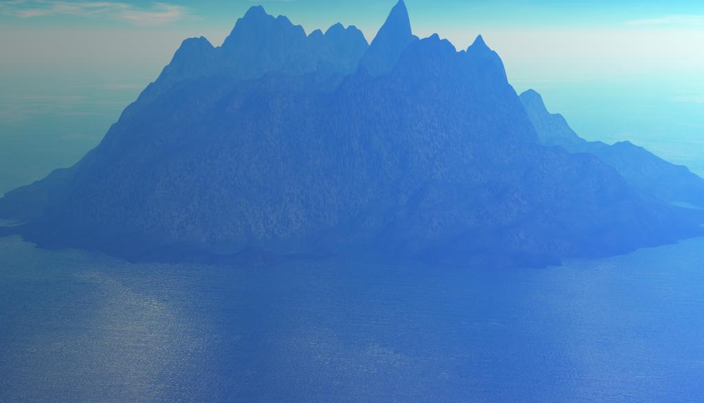 Der Berg sieht noch arg nach Bryce-Standard aus. Schau Dir mal den Terrain-Editor an und klick ein wenig drin herum (vorher ein Backup der Datei anlegen). Ich denke Smooth könnte die Insel brauchen.