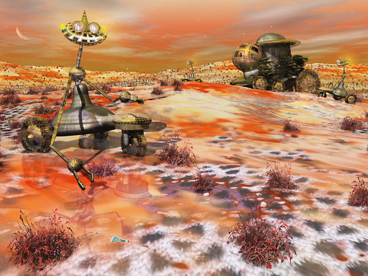 Spitze! Besonders das Gefährt im Hintergrund, das mit der Kuppel, gefällt mir sehr. Selbst gemodelt? ![]()