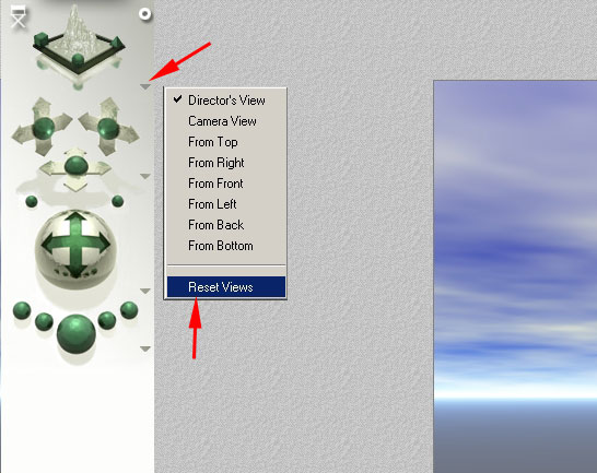 • Mir scheint Du hast einiges an Kamera (die Kamera die für das gerenderte Bild zuständig ist) verstellt. Es sieht so aus als hättest den "Field of View" Hebel bis zum Anschlag gerissen und noch 3x minus zum herauszoomen getippt.Ich würde die Views zunächst resetten. Wenn Du den Himmel so dicht ranziehst, das er schwarz wird,musst Du die Sonne neu ausrichten.