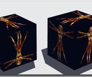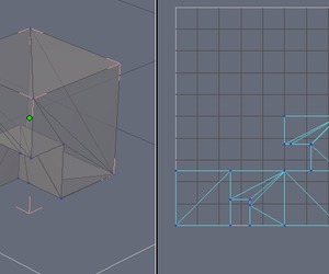 Bild 2: Wenn man 2 Bryce-Würfel per Boolean Operation verschneidet erzeugt Bryce ein komplettes automatisches UV-Layout für das Ergebnis (nach obj exportiert und geladen in Hexagon):