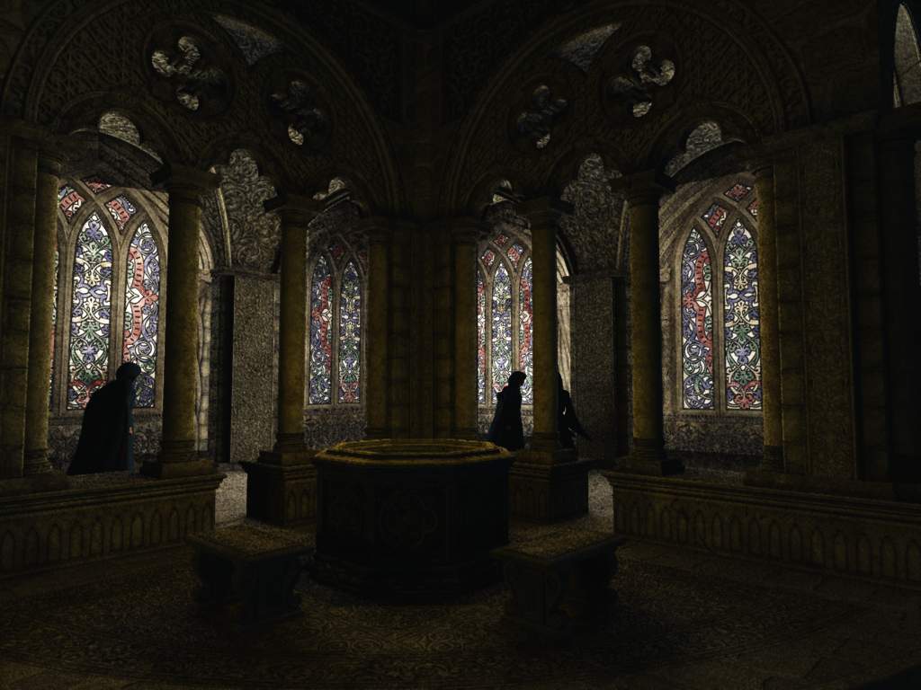 Ich mag die dunkle Szene, was mir allerdings nicht gefällt, ist die Qualität der Renderings. Die Säulend und Steine wirken so unscharf, ist da nicht noch was zu machen?