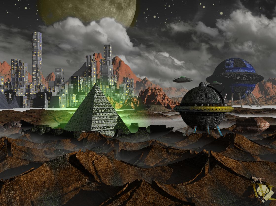 Der Vordergrund ist etwas langweilig, das Augenmerk wurde offensichtlich auf die hintere Region gelegt. Vielleicht kannst du noch einen Alien oder so in den Vordergrund schieben. ![]()