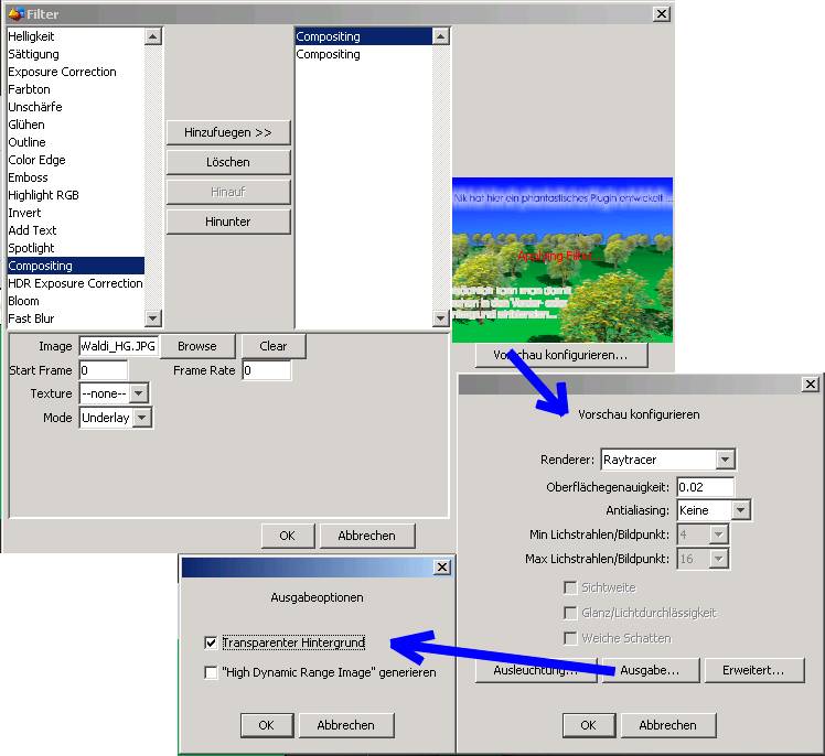 D.h. ich kann Bilder vor oder hinter das Rendering "klemmen".