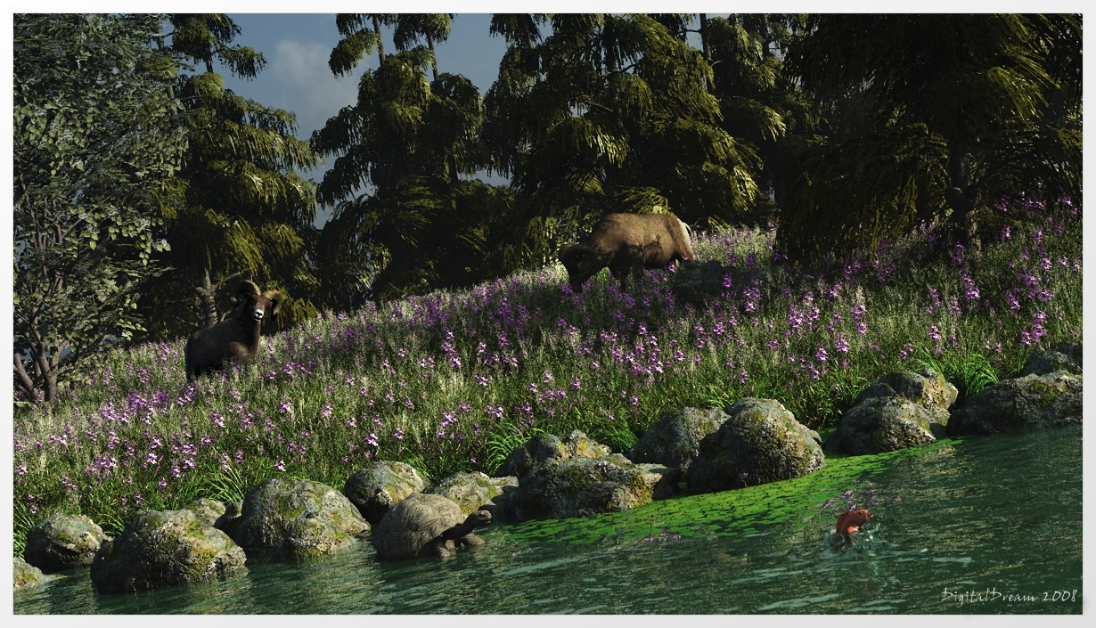 Oder du dreht das Wasser um den Anglewert der Kamera und du hast einen Gebirgssee erzeugt.
