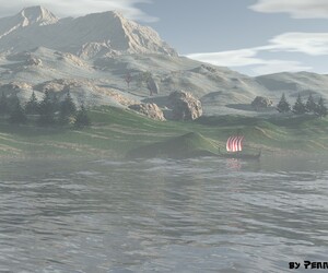 Das Schiff erscheint mir im Vergleich zum Rest (Wellen, Tannen und Felsen) etwas zu klein.