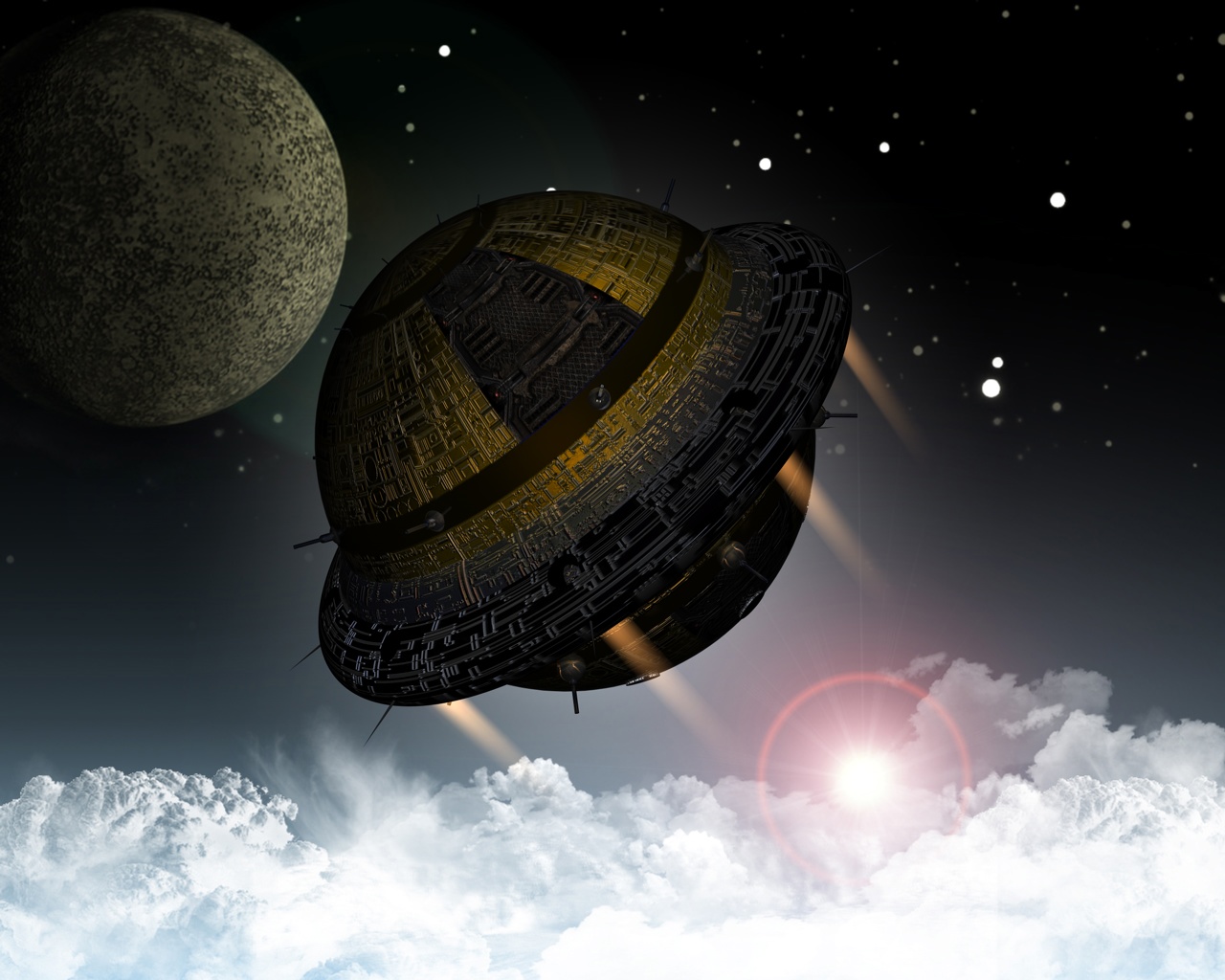 Gerendert ist es dann in Cinema mit einem meiner Kugelraumer.