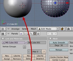 Im Pannel "Links and Materials (Button Window) einfach auf Set Smooth drücken.Noch ein kleiner Gratistipp. Es ist klar, dass wenn du eine Kugel mit 32 Segments und Rings einfügst, runder ist als Eine mit 16 (wie das Beispiel).
