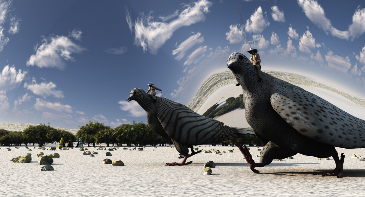 Trotzdem, es gefällt mir! Vom Blickwinkel angefangen bis hin zur Umgebung, den "Taubenreitern" und der ganzen Atmosphäre, incl. dem teils verzerrten Hintergrund.