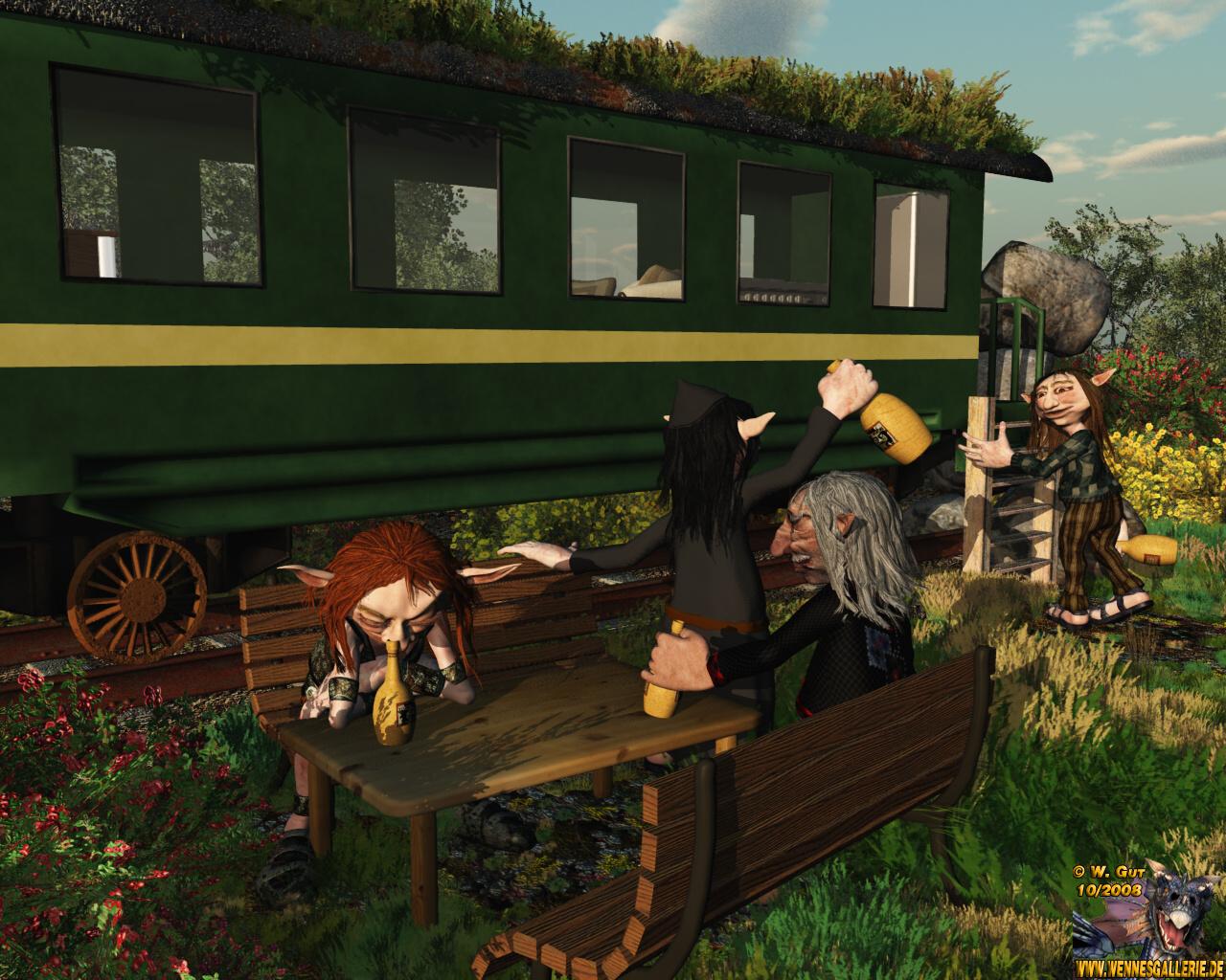 Als Inneneinrichtung in dem Waggon konnte ich nur eine Küche mit Kühlschrank (sehr wichtig fürs Bier!!! :P), ein Sofa und einen Fernseher unter bringen. Das Bett müsste dann wohl in einen extra Schlafwagen. ![]()