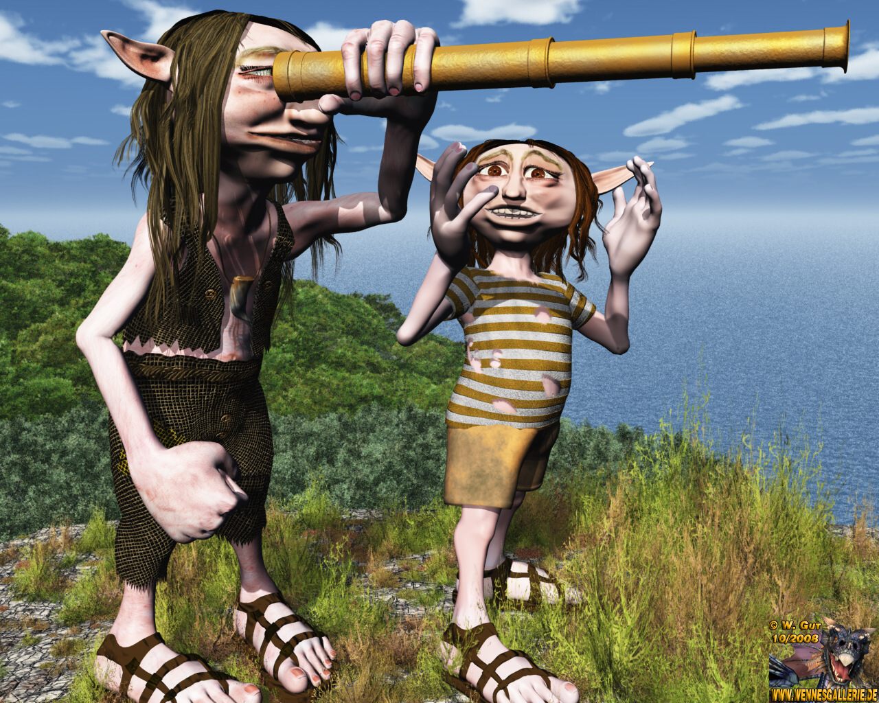 Jetzt sind sie schon ein paar Monate auf dieser Insel. Ob Teo Robinson das Fernrohr schon ein mal richtig herum gehalten hat?