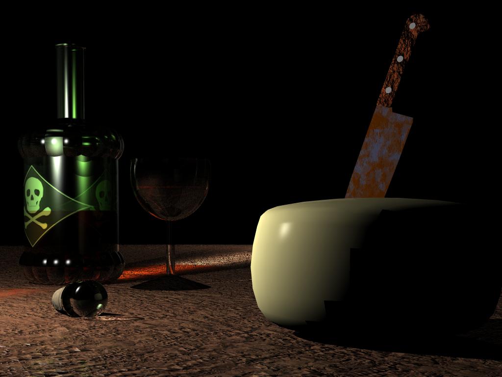 Vielleicht solltest Du die Texturen für das Messer und den Käse nochmal überarbeiten. Das Weinglas soll doch wahrscheinlich auch nichzt aus rotem Glas bestehen, oder?Das Messer war eine Last Minute Idee, das wird nochmal überholt. Das Glas hatte mir so gefallen, werde ich aber auch nach 'ner Alternative schauen.