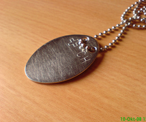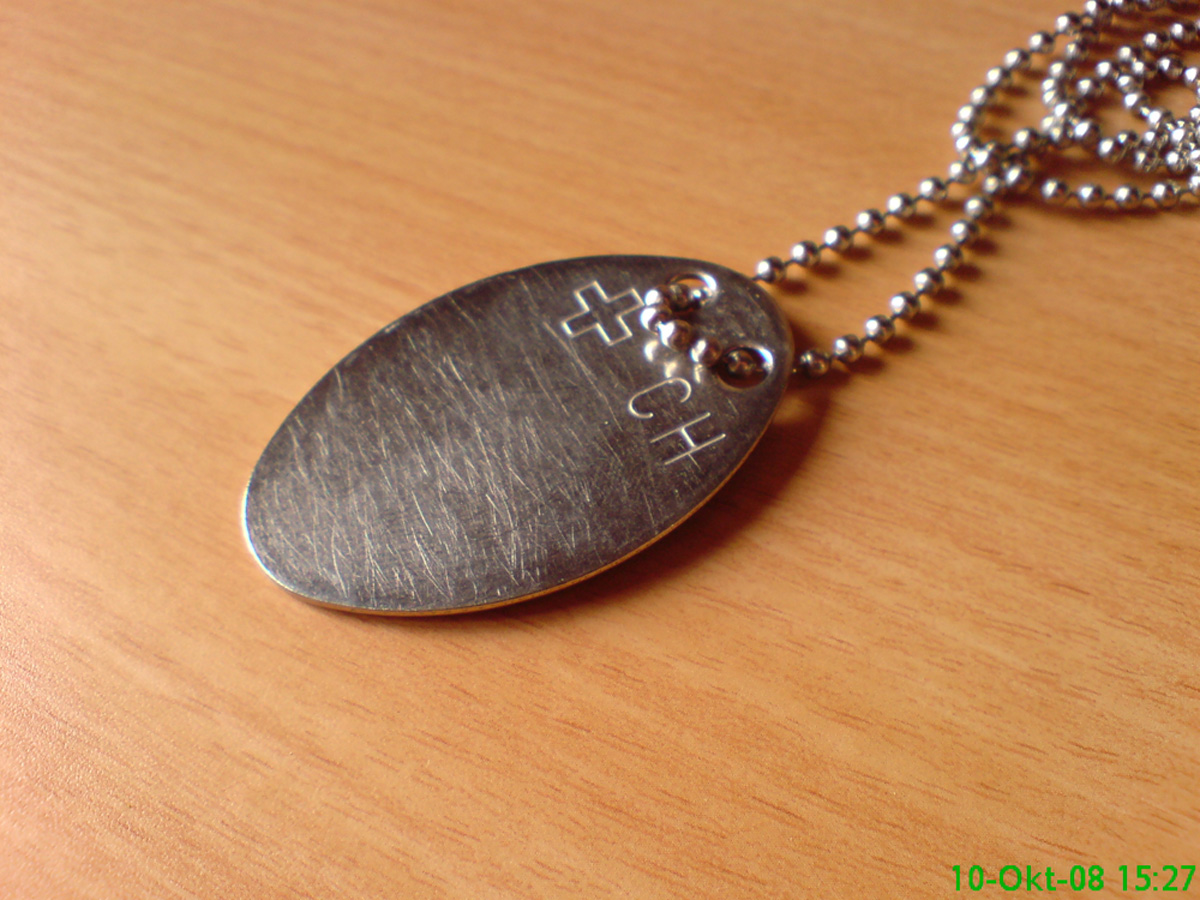 Das, mein lieber Dargain, sollte meines Wissens ein "Grabstein" sein. Sieht aber heute etwas anders aus. Falls der militärische Träger dieses Anhängers stirbt, kann er dank des Anhängers identifiziert werden.