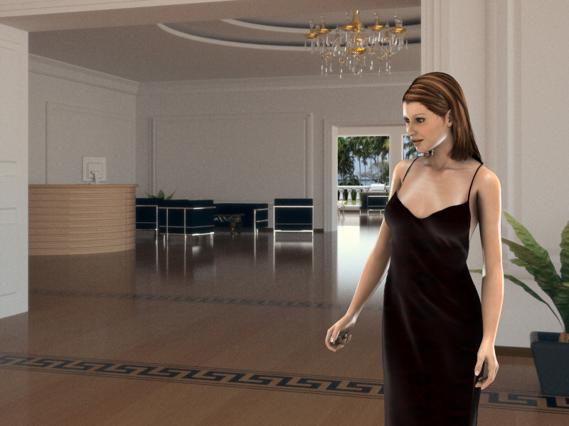 Hier nun ein kleines Villa-Renderbild. Die Figur wurde mit Daz-Studio gerendert und Schatten wurde durch SSAO erzeugt.