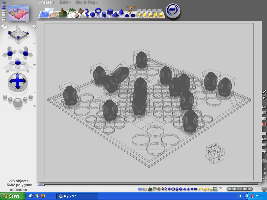 Das schwirigste war das Erstellen der Figuren. Hab von Zylindern mit nem negativen, hochgezogenen Torus was an den Außenseiten weggenommen ;)