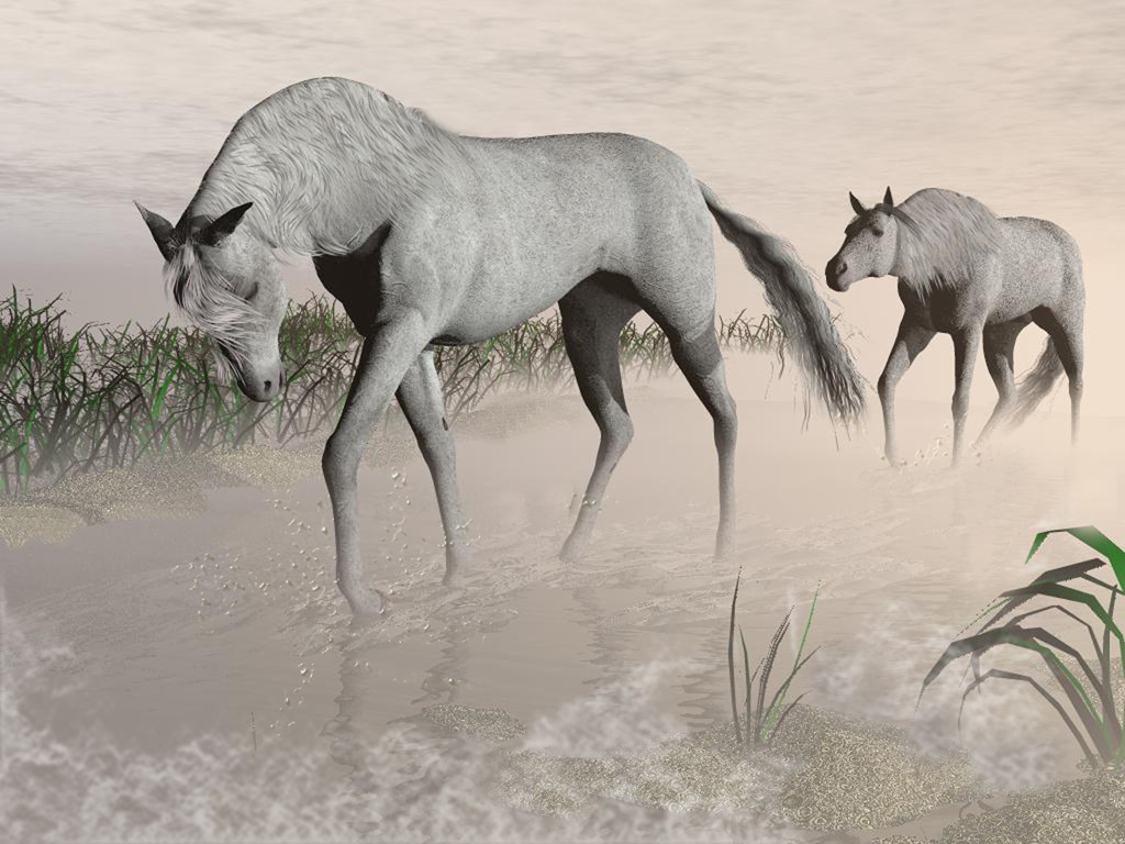 Habe die Wasserspritzer vom vorderem Pferd etwas dezenter gemacht, ich glaube das sieht ein wenig realistischer aus.