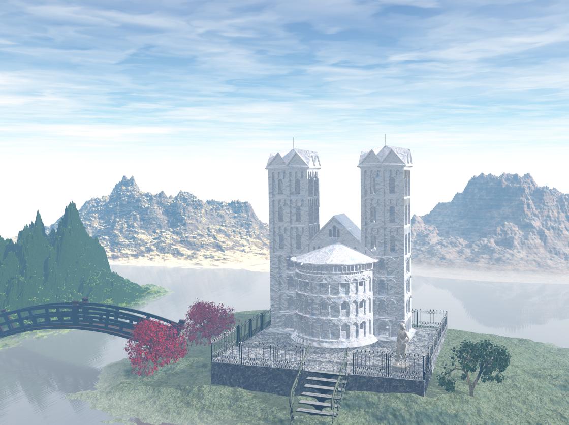 Ich finde auch Du solltest entweder das Gebäude mehr ins Rampenlicht stellen oder die Landschaft. Es sieht irgendwie unaufgeräumt aus oder besser gesagt "angeordnet" ohne Einheit oder Verbindung.