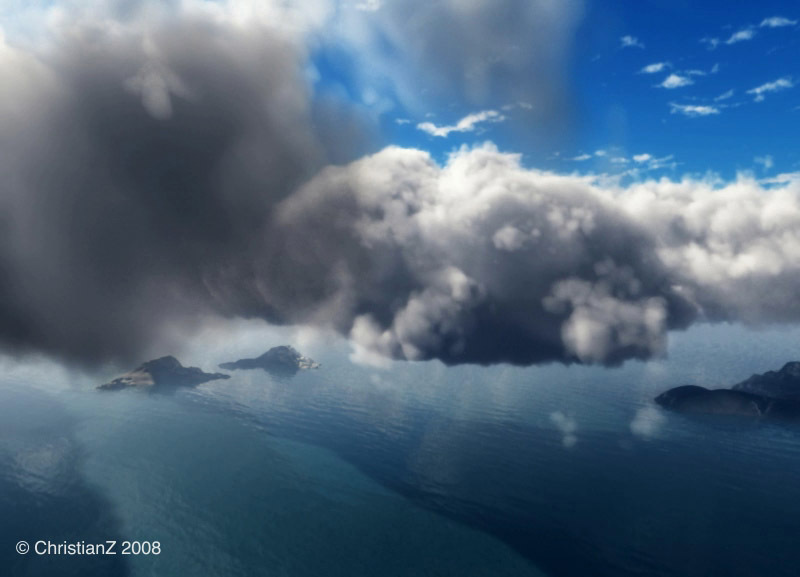 Kamerafahrt durch Wolkendecke (Vue7)