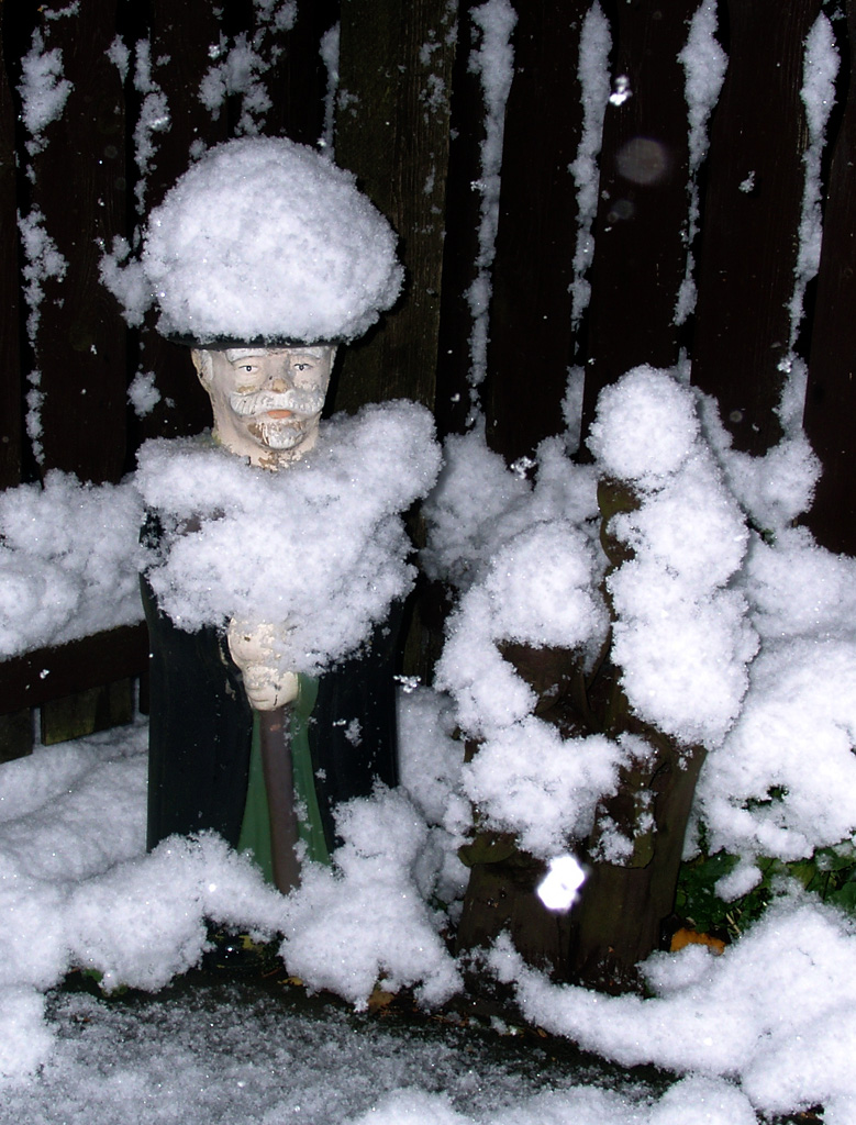 soviel Schnee hatten wir schon lange nicht mehr. Unser Keramikhirte hat prompt eine neue Mütze bekommen.