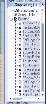 Bei meinem Projekt habe ich viele Objekte parentiert, z. B. alle Fensterteile eines Fensters zusammen parentiert, auch damit ich die Fensterflügel und -läden öffnen kann. Als Beispiel hab ich mal den Outliner-Ausschnitt eines Fensters angehängt. So in der Art hab ich viele Objekte zusammengemacht. Jetzt hab ich das Testweise ins obj-Format exportiert (hab auch Object groups ausgewählt), und dann in Vue importiert. Nur dort sind die Parents nicht mehr da, sondern alle Objekte einzeln.
